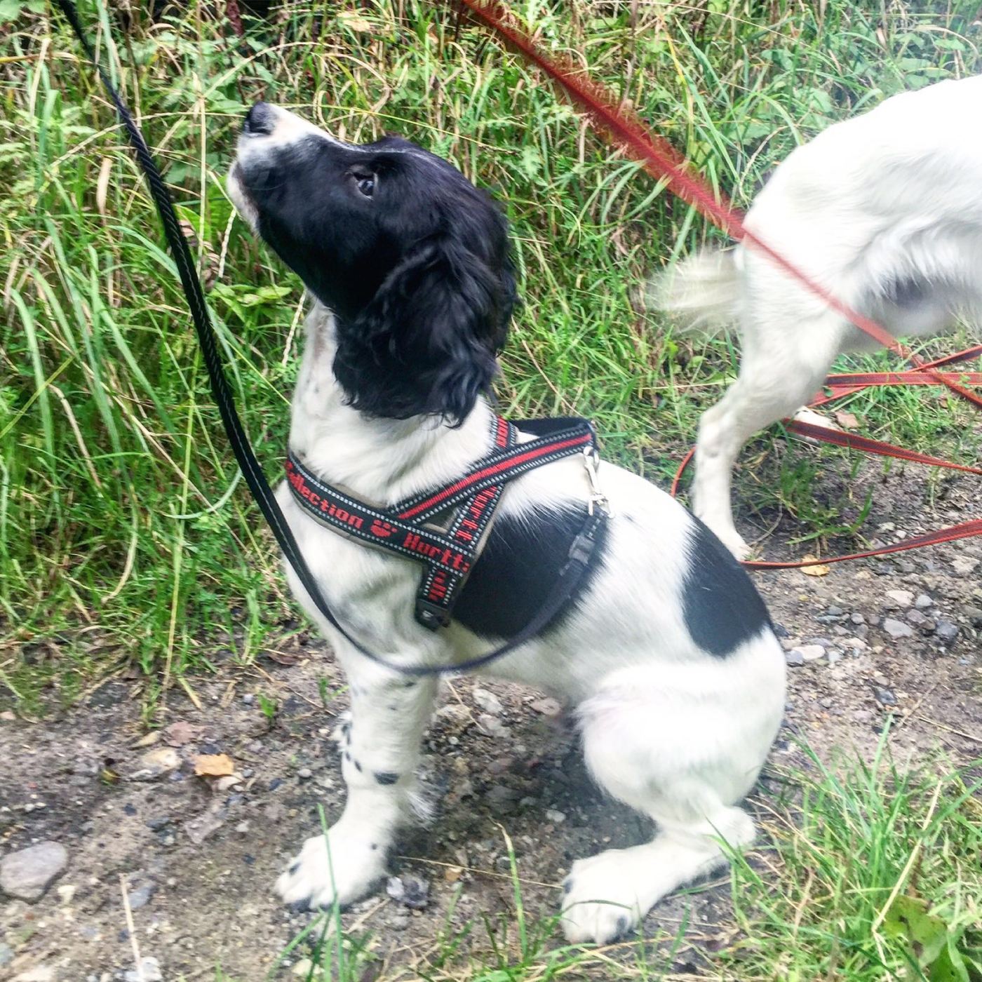 Det var en super god oplevelse og vi kom hjem med mange gode ideer til, hvordan jeg skal fortsætte træningen. Jeg vil fx gerne have at Carlos sætter sig, når han letter en fugl/hare og det har jeg været meget i tvivl om, hvordan jeg skal træne. Det er for tidligt for ham at bruge vildt til træningen, så jeg har ikke lige haft nogen ide til, hvordan jeg kan forberede ham allerede nu. Det fik vi nogle redskaber til, og jeg glæder mig meget til at komme i gang.